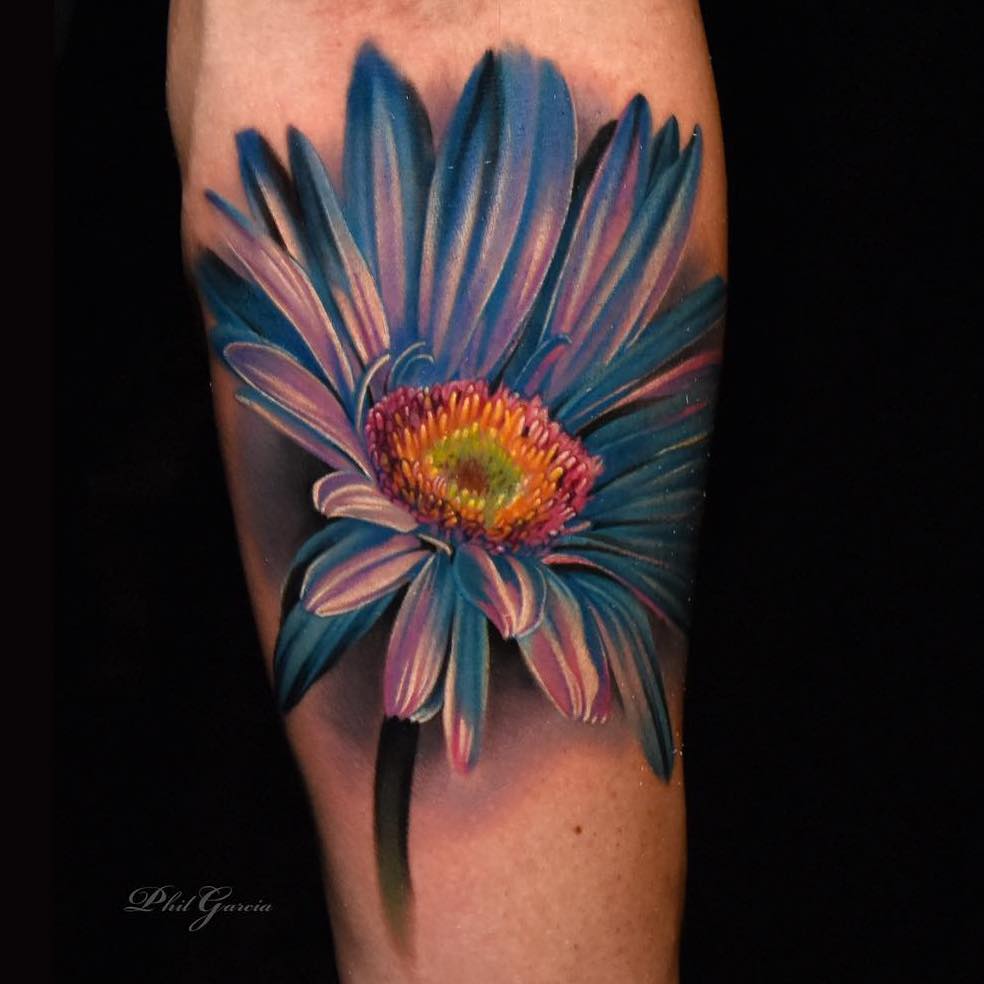 Gerber daisy tattoo on leg... In this list of cute daisy flower tattoos, you will find many options, placements, styles and colors. We will add more details about the meanings of flower tattoos soon. Daisy tattoo behind ear by jayers ko. Traditional daisy flower skull tattoo by sharon posted on 22nd november 2019 22nd november 2019 by sharon st surrealism is a style in art and literature in which ideas , images, and objects are combined in a strange way, like in a dream. Purple and pink gerber daisy tattoos by mike riina at from www.pinterest.com. Popular daisy tattoo designs traditional daisy tattoo. Flowers have always been a source of inspiration because of their beauty and. Watercolor 3d daisy flower tattoo design.